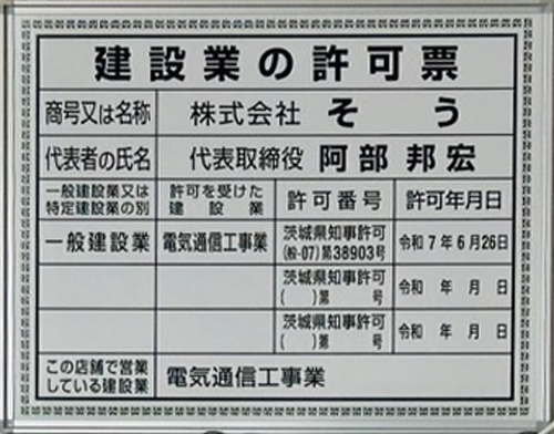 私たちは「一般建設業許可(茨城県知事許可 般-07 第38903号)」を取得しており、建築工事の法的な信頼性・安全性にも対応しています。