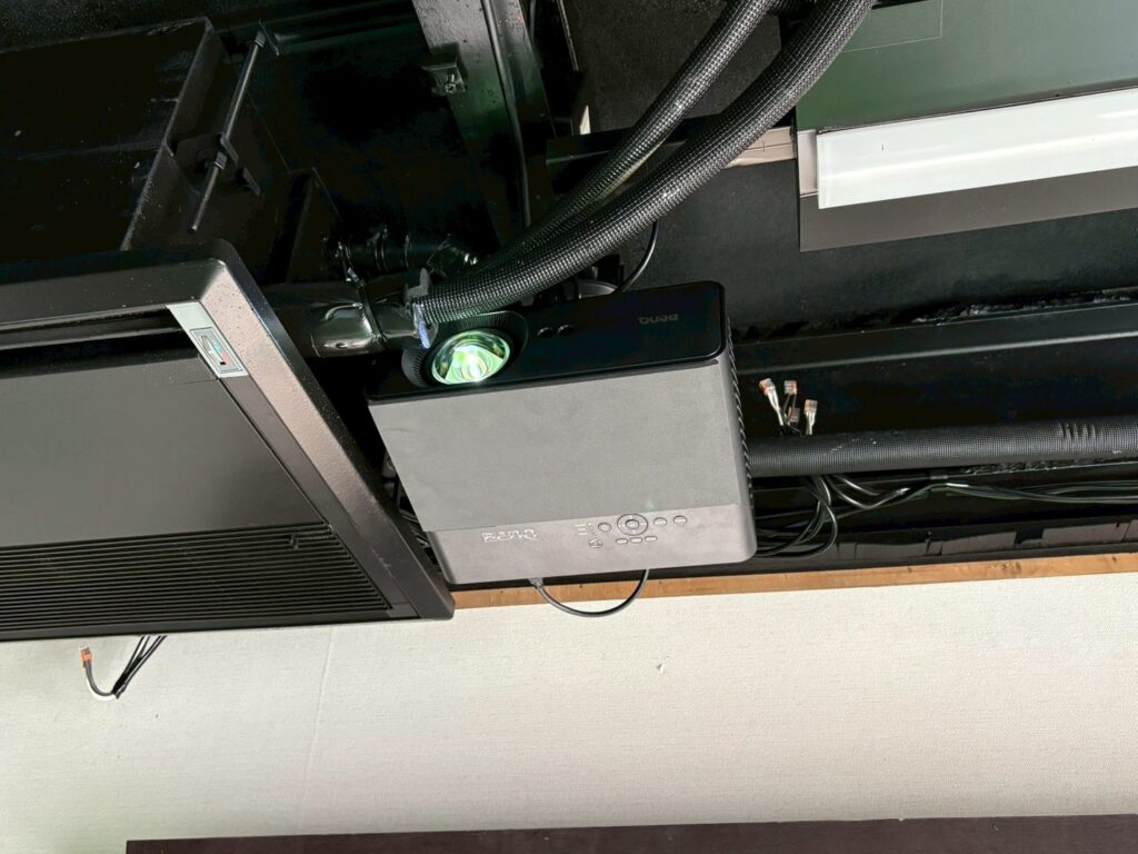 今回のケースでは、お客様のスイングフォームにより、当初の設計位置ではプロジェクターにクラブが接触する可能性が判明したため、その場で最適な位置にプロジェクターを調整を行いました。